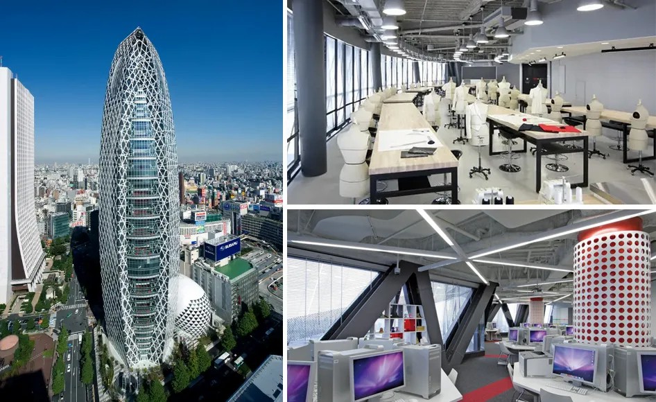 东京MODE学园在日本时尚教育界占据绝对顶尖地位。其在校生规模、专业覆盖度、校企合作深度均为全国第一:坐拥约4,700名学员,12个学科横跨时装、美容、室内、平面等全创意链条,学校所在“Cocoon Tower”也是新宿核心地段的著名地标。